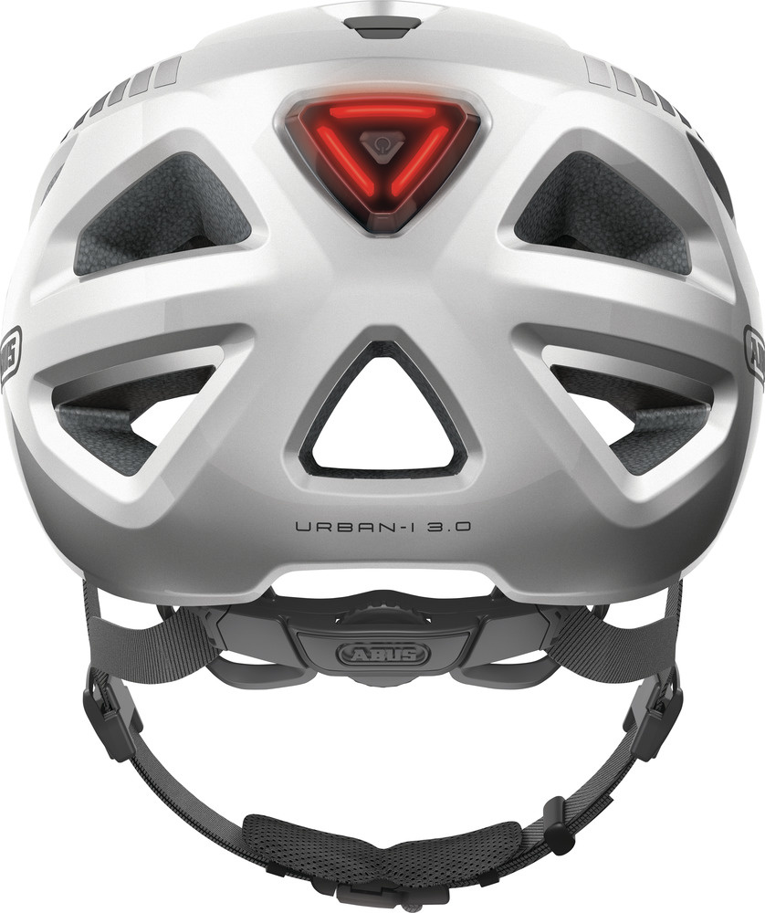 De zilverkleurige fietshelm 'Urban-I 3.0 Signal Silver' in maat L van ABUS is een praktische, allround stadsfietshelm. De lichtgewicht helm is voorzien van een gebruiksvriendelijk verstelsysteem, insectengaas, reflectie en een LED achterlicht voor extra zichtbaarheid in het verkeer.