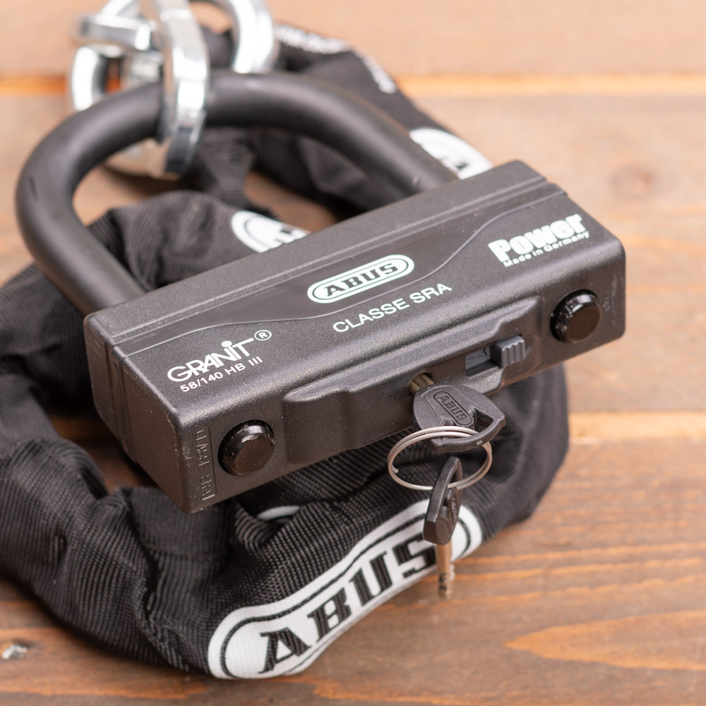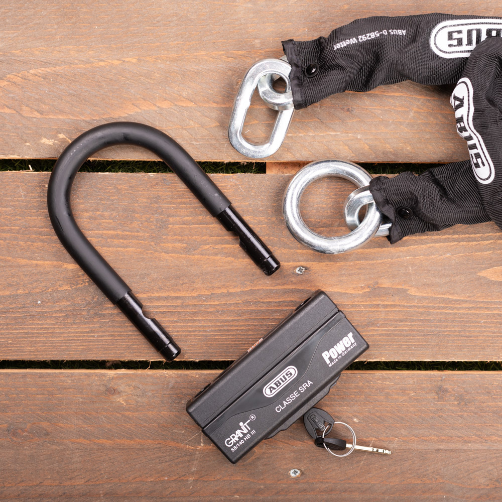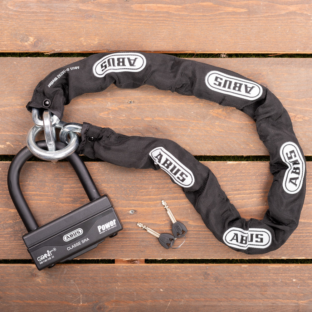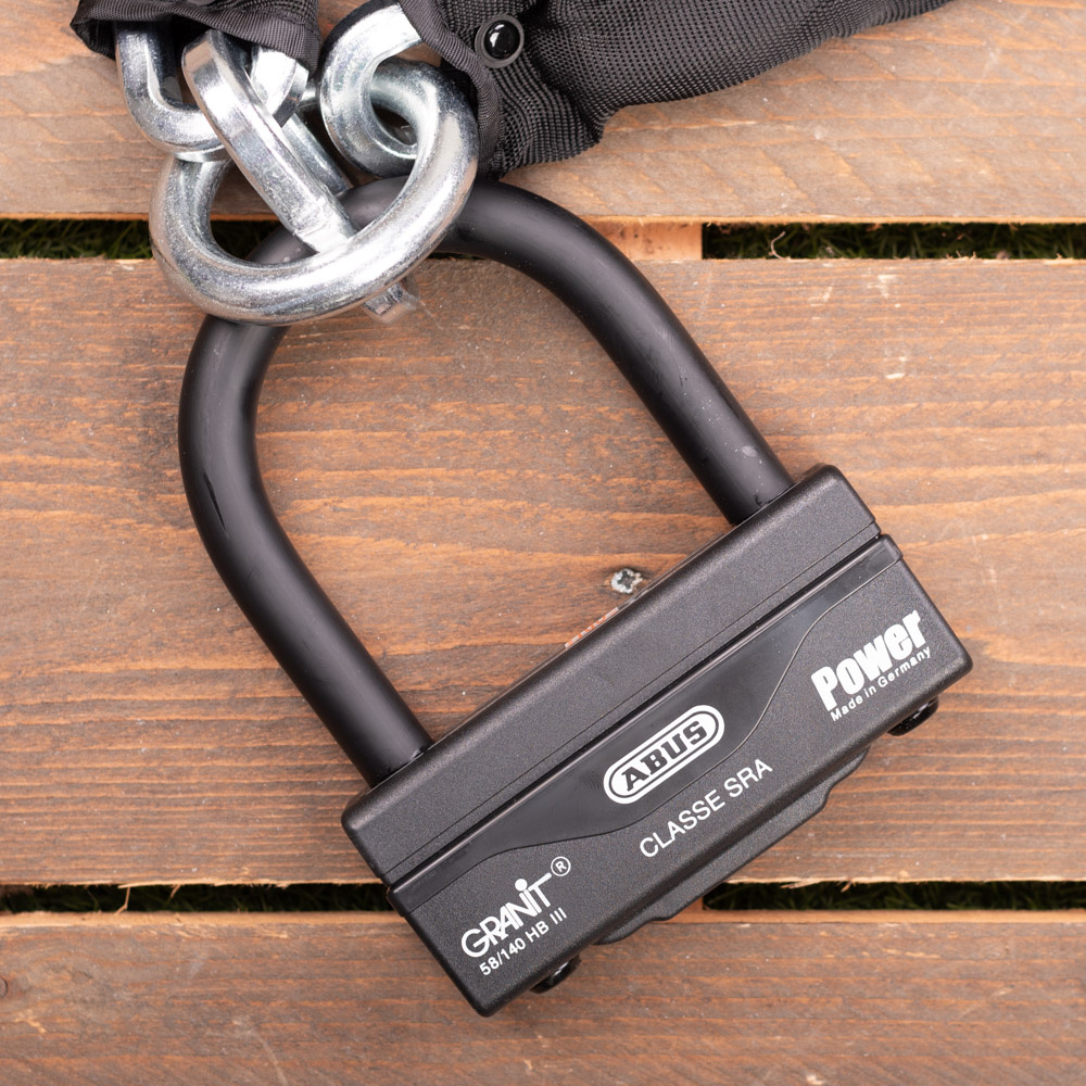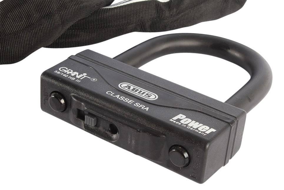 Dit ABUS kettingslot met beugel en lusbare ketting is ideaal voor de beveiliging van uw motor, scooter of boot. Het slot is ART-4 goedgekeurd (toelatingsnr. MBT 4018). Op de veiligheidsschaal van ABUS wordt dit slot maar liefst ingeschaald op level 19. Het slot biedt daarmee een zeer goede bescherming bij een hoog diefstalrisico en is geschikt voor het beveiligen van scooters en motorfietsen.