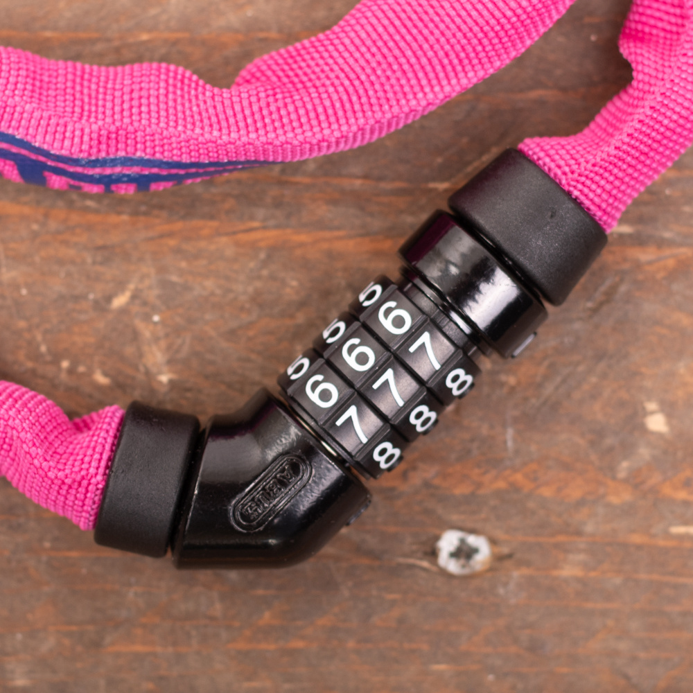 Het slot is 75 cm lang en heeft schakels van 4 mm dik. De schakels zijn gemaakt van gehard speciaalstaal. Het slot is voorzien van een roze beschermhoes, die lakschade aan de fiets voorkomt. Het slot sluit met een individueel in te stellen driecijferige code.