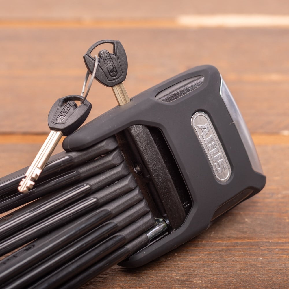 Dit vouwslot met XPlus cilinder bestaat uit 5 mm geharde elementen. De XPlus cilinder biedt een bijzonder goede bescherming tegen manipulatie zoals picking. De elementen, het slothuis en de interne elementen van het slotmechanisme zijn gemaakt van gehard speciaalstaal. Verder hebben de elementen een extra zachte 2-componentencoating. Dat voorkomt lakschade aan het fietsframe.