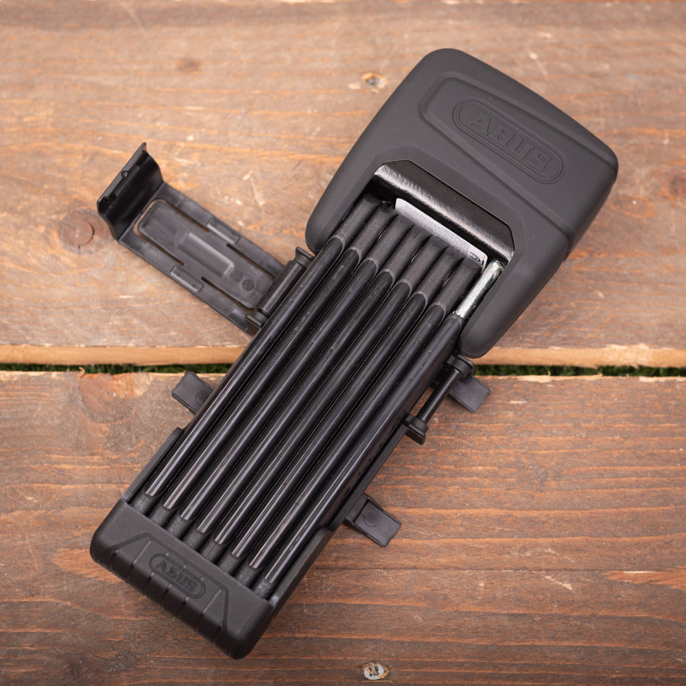 Dit vouwslot met SmartX-cilinder bestaat uit 5 mm dikke geharde elementen. De cilinder biedt een bijzonder goede bescherming tegen manipulatie zoals picking. De elementen en de interne elementen van het slotmechanisme zijn gemaakt van gehard speciaalstaal. Verder hebben de elementen een extra zachte 2-componentencoating. Dat voorkomt lakschade aan het fietsframe. Het slot wordt geleverd met een slothouder. Deze is eenvoudig te bevestigen aan het frame met praktische spanbanden.
