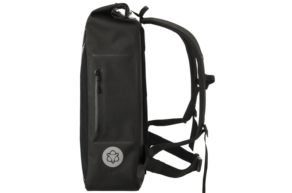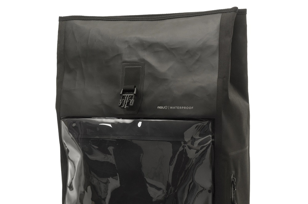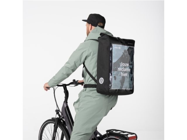 De Courier Backpack Shelter van AGU is speciaal ontworpen voor fietskoeriers. De professionele zwarte koeriersrugzak is sterk en waterdicht, en heeft een inhoud van maar liefst 35 tot 40 liter. De rugtas is voorzien van een rolsluiting, een laptopvak, comfortabele schouderbanden, een verstelbare heup- en borstriem en reflectie. Bovendien heeft de tas een transparant en waterdicht insteekvak in A3-formaat op de voorkant, waardoor de tas ook een mobiele reclamedrager is.