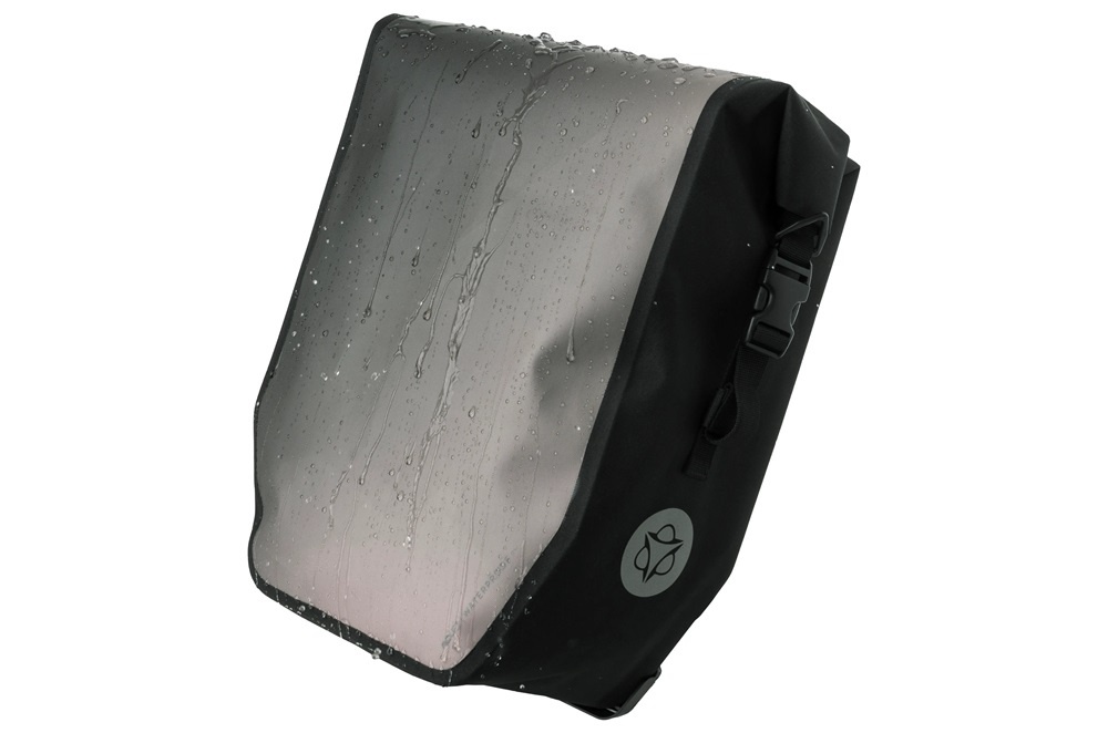 Dankzij innovatieve toepassingen is de fietstas volledig waterdicht, met een waterdichte binnenvoering en getapete naden. De waterbestendige rolltop-opening aan de bovenkant heeft een verhard element voor houvast bij het op- en afrollen.