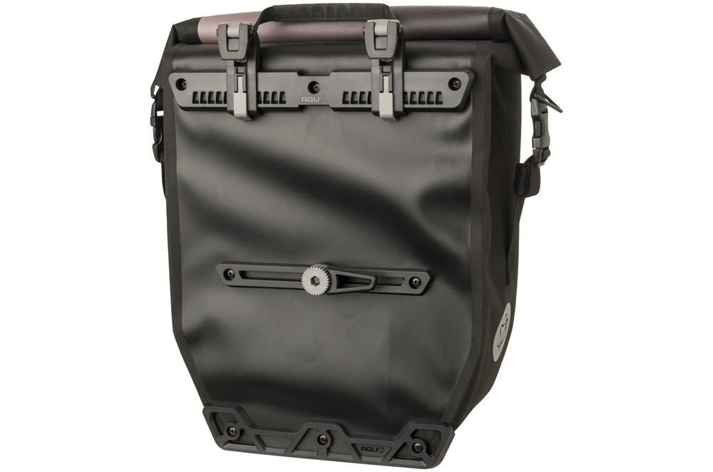 U bevestigt de tas eenvoudig aan de bagagedrager met de premium Click'nGo-haken van AGU. Deze 'railed hooks' kunnen in de breedte worden versteld, zodat deze altijd passen op uw bagagedrager. Wanneer u aan het handvat trekt dat gekoppeld is aan het haaksysteem, gaan de haken open zodat u de tas gemakkelijk van de fiets af kunt halen. Dankzij de AGU Click'nGo Swinglock blijft de tas op zijn plek en de AGU Click'nGo bottomguard beschermt de onderzijde van de tas. De fietstas is e-bike proof en past dus ook op de meeste elektrische fietsen.