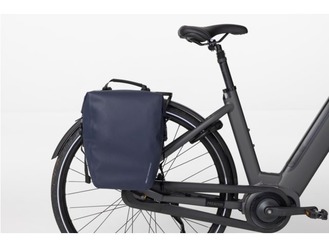 De enkele fietstas en pakaftas heeft een ruim hoofdvak, een verharde achterplaat, een handvat en 3M-reflectie. Binnenin het hoofdvak vindt u een klein opbergvakje met ritssluiting. Het hoofdvak heeft een rolltopsluiting met klikgespen. Met de bijgeleverde afneembare zwarte schouderriem kunt u de tas ook dragen als schoudertas.