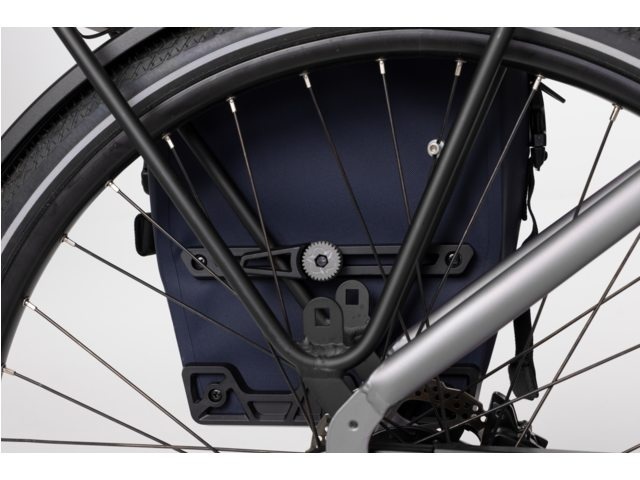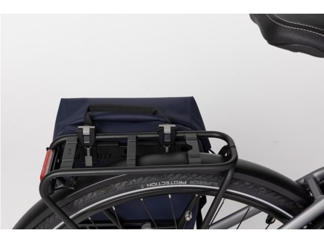 U bevestigt de tas eenvoudig aan de bagagedrager met de premium Click'nGo-haken van AGU. Deze 'railed hooks' kunnen in de breedte worden versteld, zodat deze altijd passen op uw bagagedrager. Wanneer u aan het handvat trekt dat gekoppeld is aan het haaksysteem, gaan de haken open zodat u de tas gemakkelijk van de fiets af kunt halen. Dankzij de AGU Click'nGo Swinglock blijft de tas op zijn plek en de AGU Click'nGo bottomguard beschermt de onderzijde van de tas. De fietstas is e-bike proof en past dus ook op de meeste elektrische fietsen.