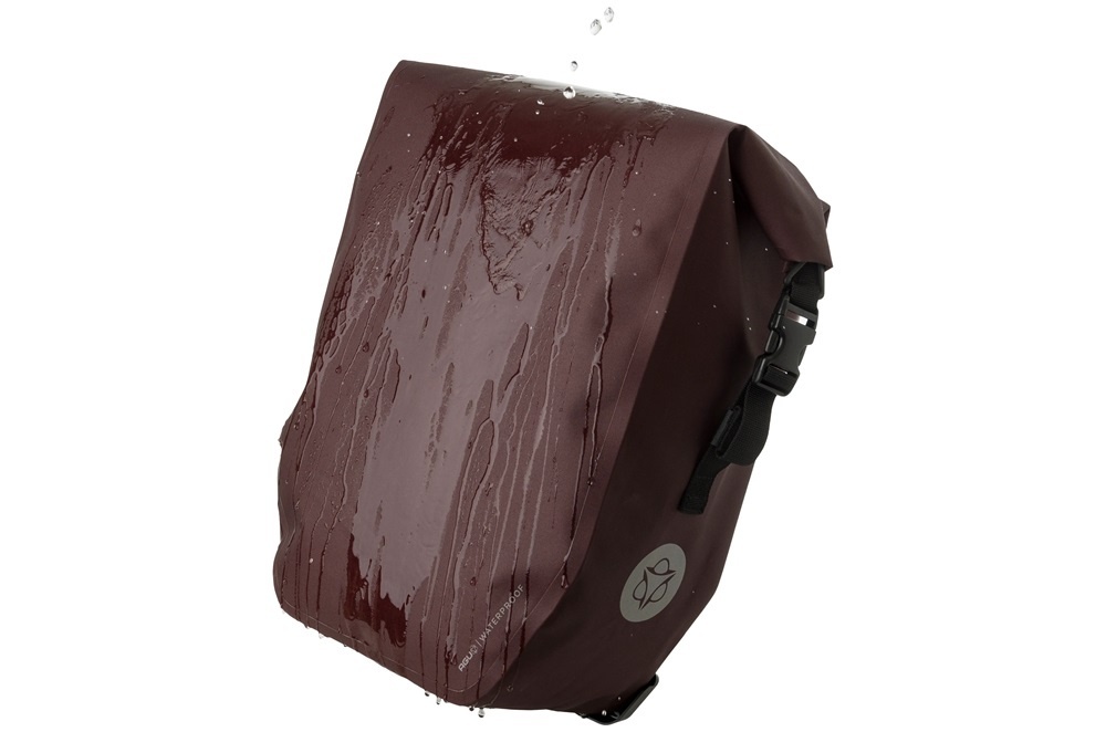 Dankzij innovatieve toepassingen is de fietstas volledig waterdicht, met een waterdichte binnenvoering en getapete naden. De waterbestendige rolltop-opening aan de bovenkant heeft een verhard element voor houvast bij het op- en afrollen.
