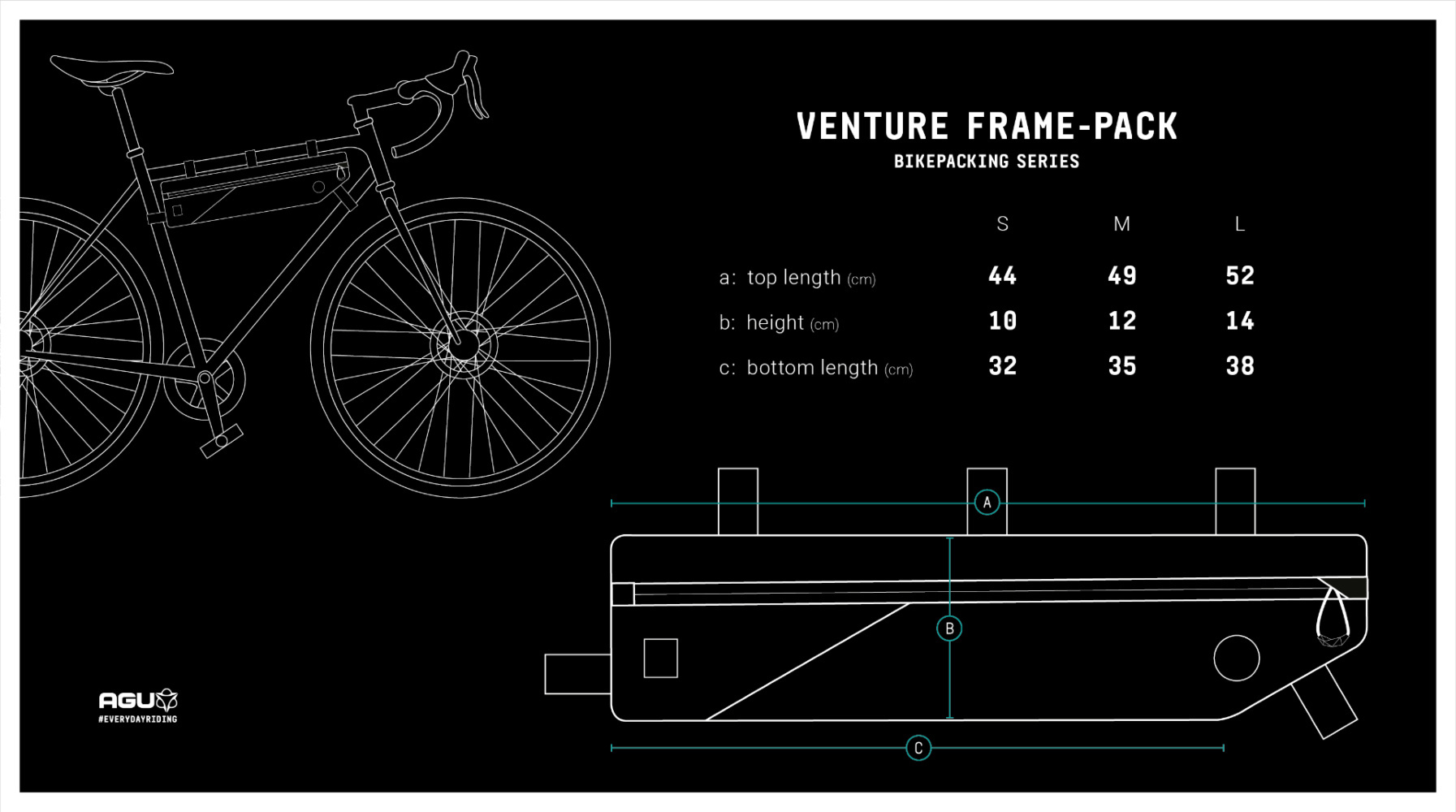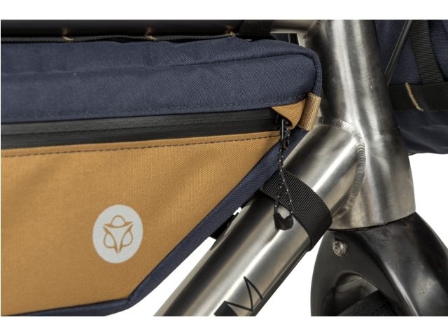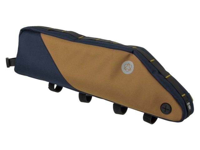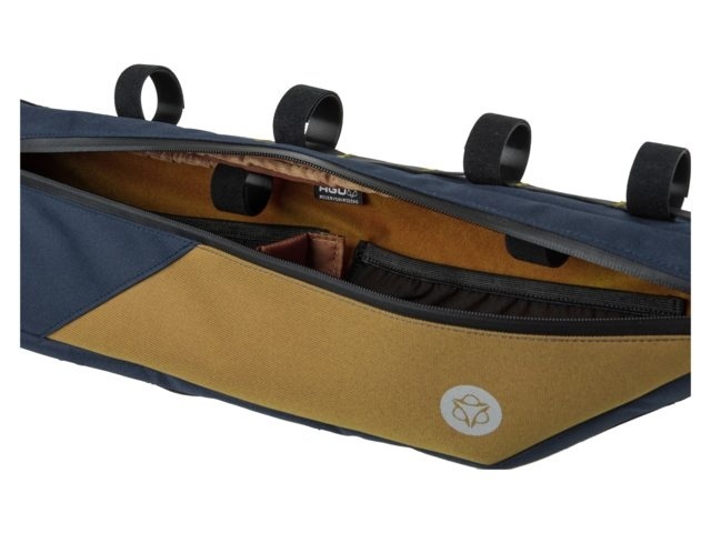 Met deze stevige frametas van AGU, in de kleuren donkerblauw en lichtbruin, kiest u voor kwaliteit en duurzaamheid. De Venture Frame-pack Medium is gemaakt van gerecycled polyester en heeft een inhoud van 4 liter. De frametas is onderdeel van de Venture-serie van AGU. De tassen uit deze serie zijn uitermate geschikt voor bikepacking.