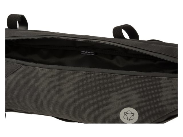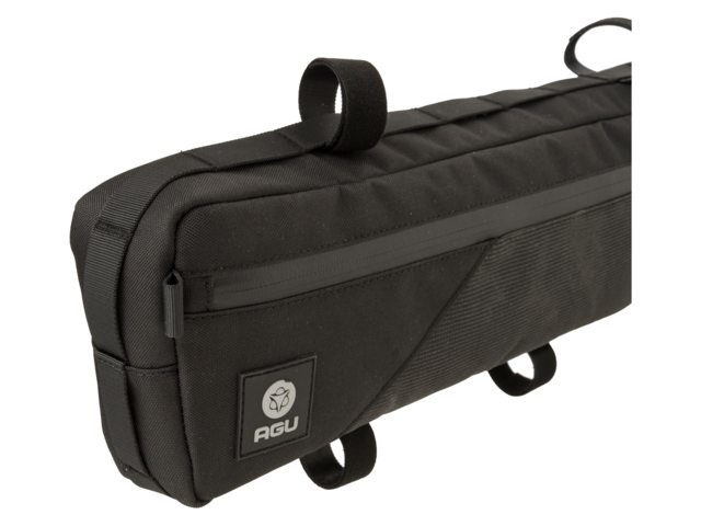 Deze zwarte frametas komt uit de sportieve Venture-serie van AGU. Deze tassen zijn zeer geschikt voor bikepacking. De frametas is waterdicht, met een YKK (waterafstotende) ritssluiting over de hele breedte van de tas, die met één hand te openen is. De tas heeft een groot compartiment met een doorgang voor een hydratatiesysteem.