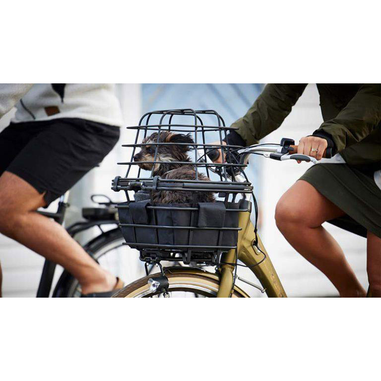 De draadkoepel wordt geleverd inclusief een zwarte, stoffen inlay voor op de bodem van de mand, zodat uw huisdier comfortabel zit onderweg.
