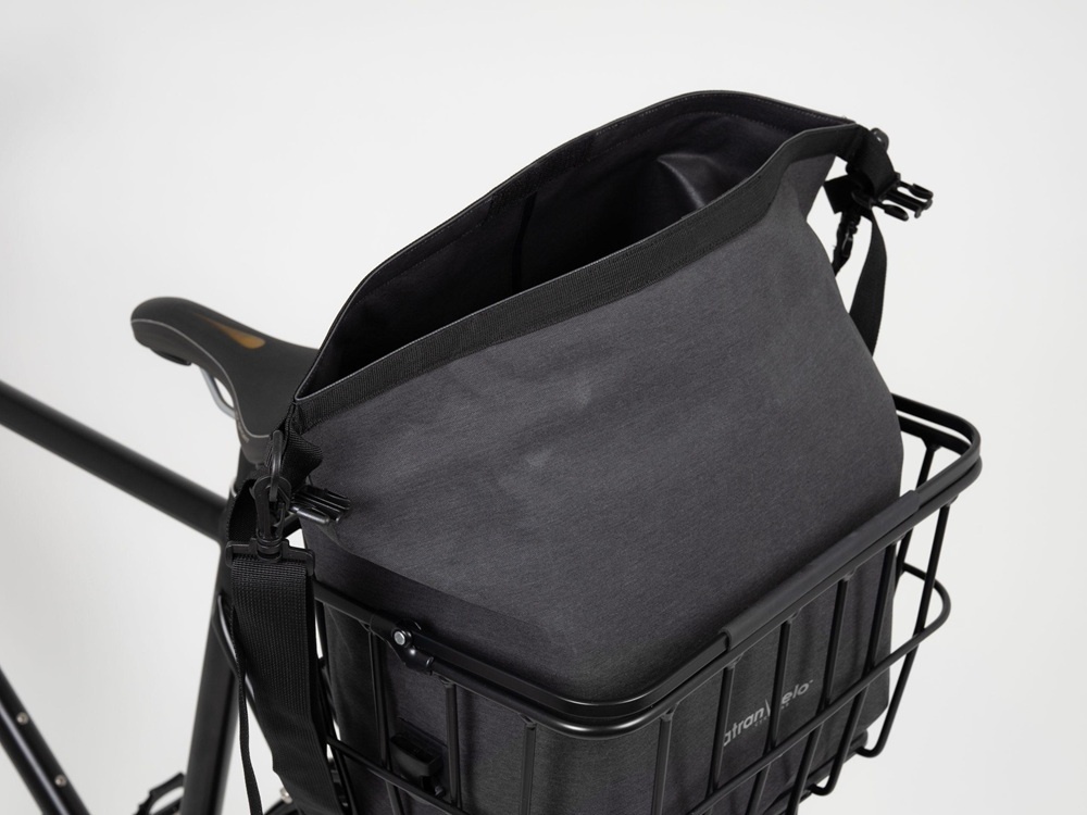 De praktische mandtas sluit met een waterproof rolsluiting die wordt vastgezet met een klikgesp. Van de fiets af draagt u de tas gemakkelijk met u mee aan de draaggreep of aan de afneembare en verstelbare zwarte schouderband.