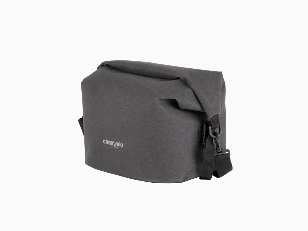 Deze stevige Travel Bag van het merk AtranVelo past in de fietsmand Epic Multi AVS. De donkergrijze mandtas is gemaakt van waterdicht polyester en is voorzien van een schouderband.