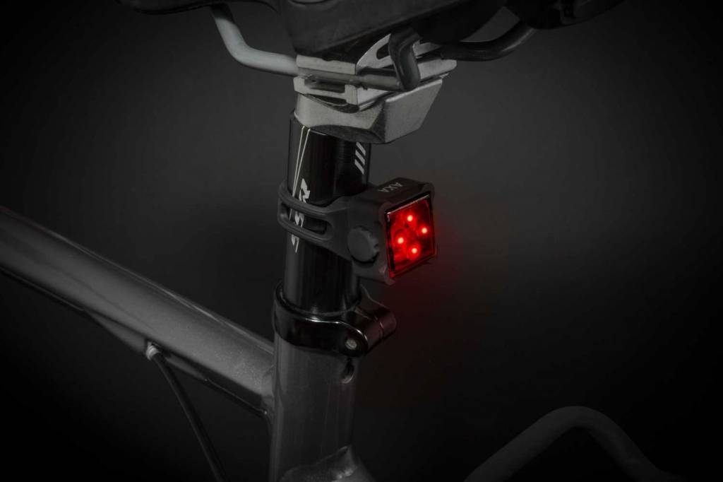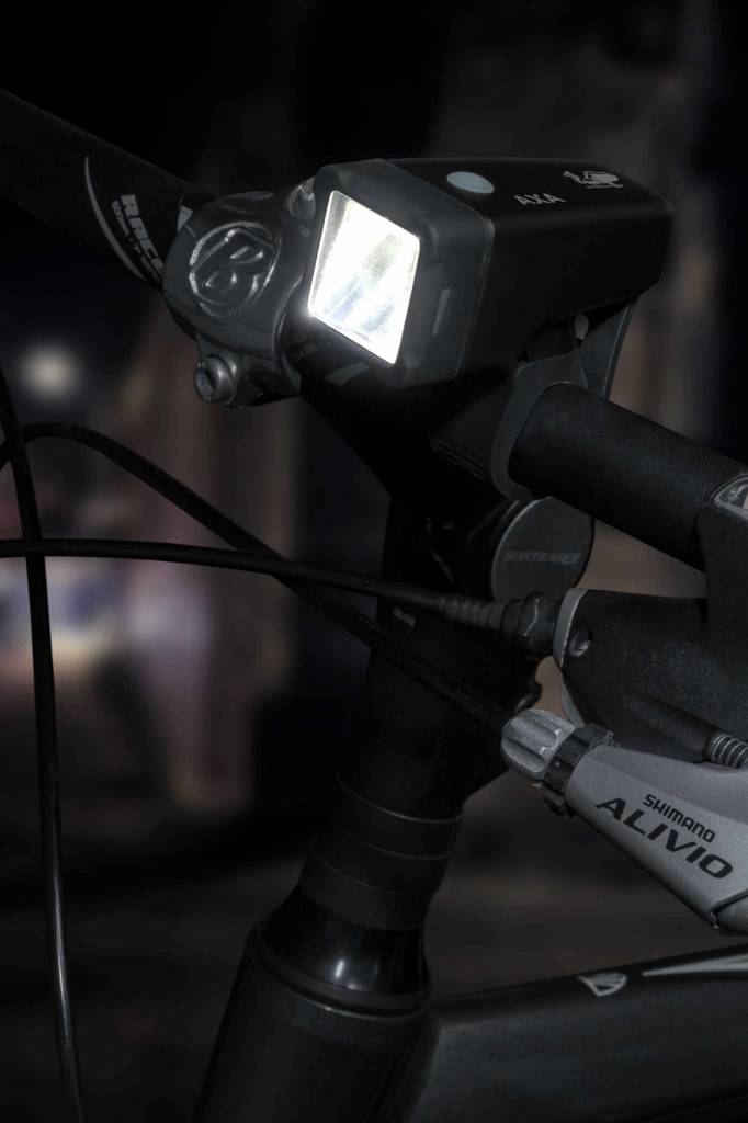 Een koplamp en een rood achterlicht, beide USB-oplaadbaar. Zie hier de AXA Niteline T4-R, het antwoord in deze moderne tijd op de vraag naar veilige, sterke (led-)fietsverlichting.