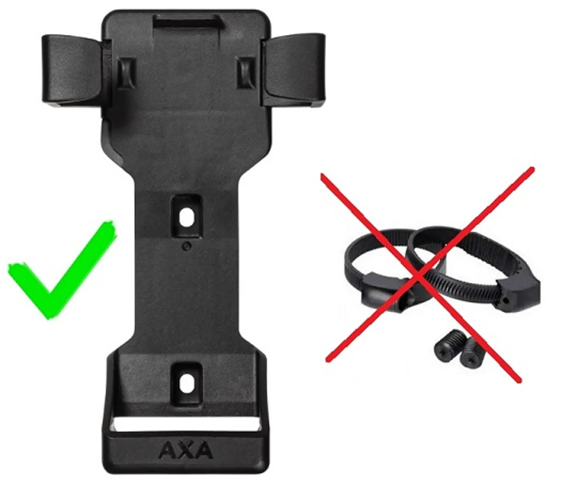 Let op: dit vouwslot wordt geleverd exclusief bevestigingsmateriaal en flexibele strips. De schroefjes voor de montage op de bidonnokken worden wel meegeleverd. Zie voor een extra bevestigingsmogelijkheid de AXA Fix.
