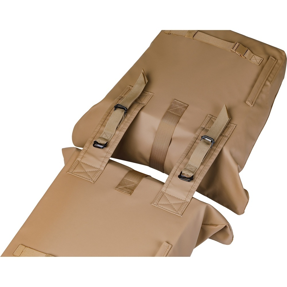 De dubbele tas heeft een ruim, gevoerd binnenvak met een inhoud van in totaal 18-20 liter (x2), afhankelijk van hoe hoog u de tas dichtmaakt. Het hoofdvak van de tas sluit met een ritssluiting en vouwsluiting. Deze waterkerende vouwsluiting met klikgesp voorkomt dat regenwater de tas binnen druppelt. In de bodem van de tas zit een afwateringsgaatje. Voorop de tas zit een extra opbergvak met ritssluiting.