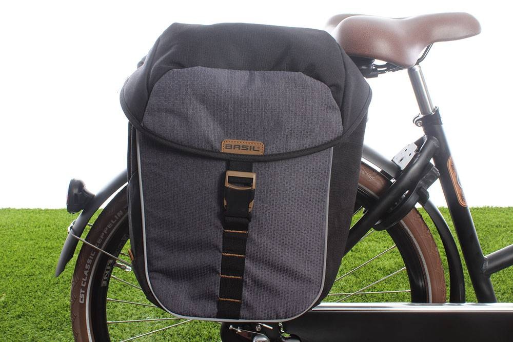 Deze kwalitatief hoogwaardige, sportieve dubbele fietstas van Basil is een ware aanwinst voor op de fiets. De tas heeft een inhoud van 32 liter en is gemakkelijk op de fiets te bevestigen én van de fiets te halen met het MIK-bevestigingssysteem. De tas, in de kleuren zwart en grijs, is bovendien waterdicht (IPX 3).
