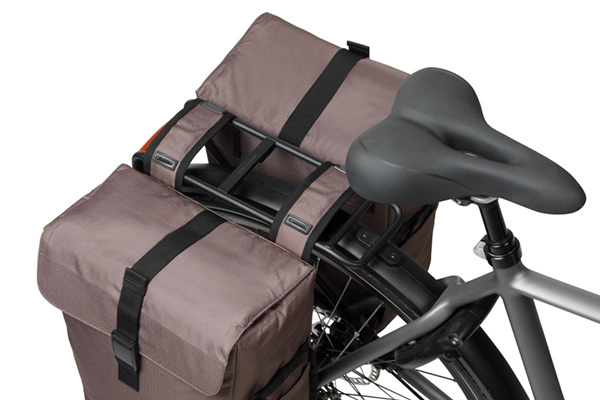 Deze Basil Move is eenvoudig aan de bagagedrager te bevestigen met verstelbare riempjes. De brug (tussen de tassen) bestaat uit twee banden, waardoor de snelbinders toegankelijk blijven. Het Universal Bridge-systeem zorgt ervoor dat de tas ook geschikt is voor gebruik in combinatie met systemen als MIK, Racktime en i-Rack/Carrymore (adapterplaat niet inbegrepen). Met een dergelijk systeem is de fietstas gemakkelijk van de fiets af te pakken. De tas kan ook aan de bagagedrager worden bevestigd met behulp van het afneembare tasdrager (los te bestellen). Onderaan de achterplaat zit een strook klittenband, voor extra stabiliteit aan de fiets.