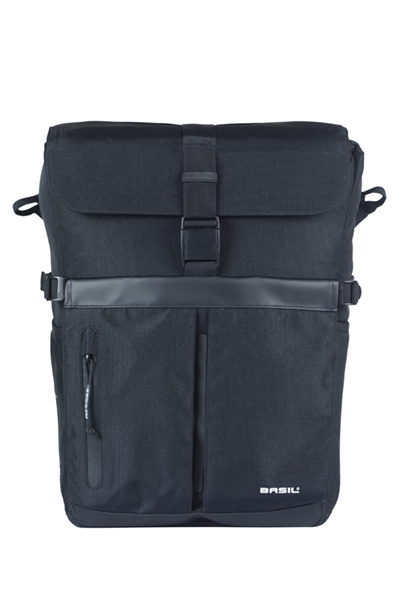 In het hoofdvak van de Basil Move zit een ritsvak en een gewatteerd laptopvak, voor het veilig meenemen van een (kleine) laptop of tablet. De tas sluit met een klep met een klikgesp. Voorop zit een extra ritsvakje en de tas heeft elastische zijvakken. Aan de voorkant zit een verstelbaar helmvak, perfect voor het meenemen van een helm of voor het opbergen van een regenjack. De achterkant van de tas is verstevigd met een harde achterplaat en de tas is aan drie zijden voorzien van reflecterende elementen. Tijdens een hevige regenbui houdt de meegeleverde groene regenhoes de inhoud van de tas droog.