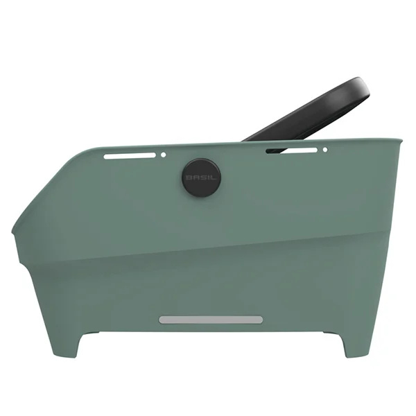 De Cento Neo MIK van Basil is een afneembare fietsmand voor achterop de fiets. De mand is gemaakt van gerecycled kunststof en uitgevoerd in het groen. De fietsmand heeft een zwarte kunststof draaggreep, waardoor deze prettig draagt en gemakkelijk mee te nemen is, bijvoorbeeld bij het boodschappen doen. Dankzij het strakke ontwerp en de doordachte vormgeving past de Cento Neo goed op moderne stadsfietsen en e-bikes.