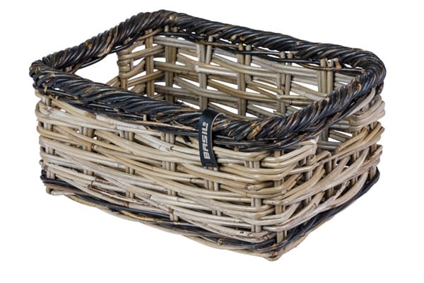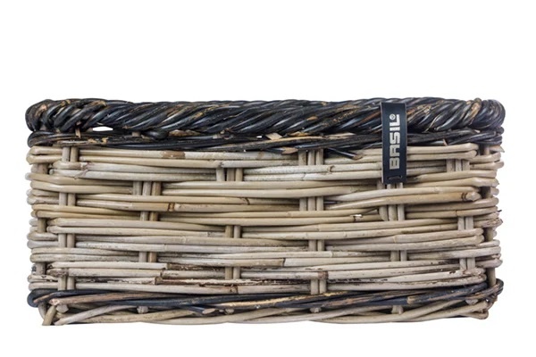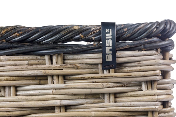 Naast fietstassen en fietskratten levert het merk Basil ook hippe en fraaie fietsmanden. Zoals deze compacte grijze fietsmand met zwarte rand, gemaakt van sterk rotan. De fietsmand Dijon in maat S heeft een inhoud van ongeveer 14 liter. Het bijzondere vlechtwerk geeft de mand een luxe uitstraling.