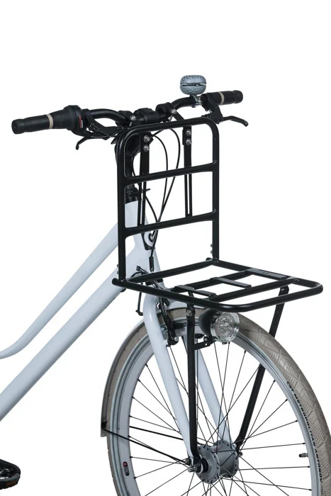 Deze voordrager kan 10 kilo aan gewicht aan. Dat betekent dus standaard veel extra bagageruimte vóórop de fiets!