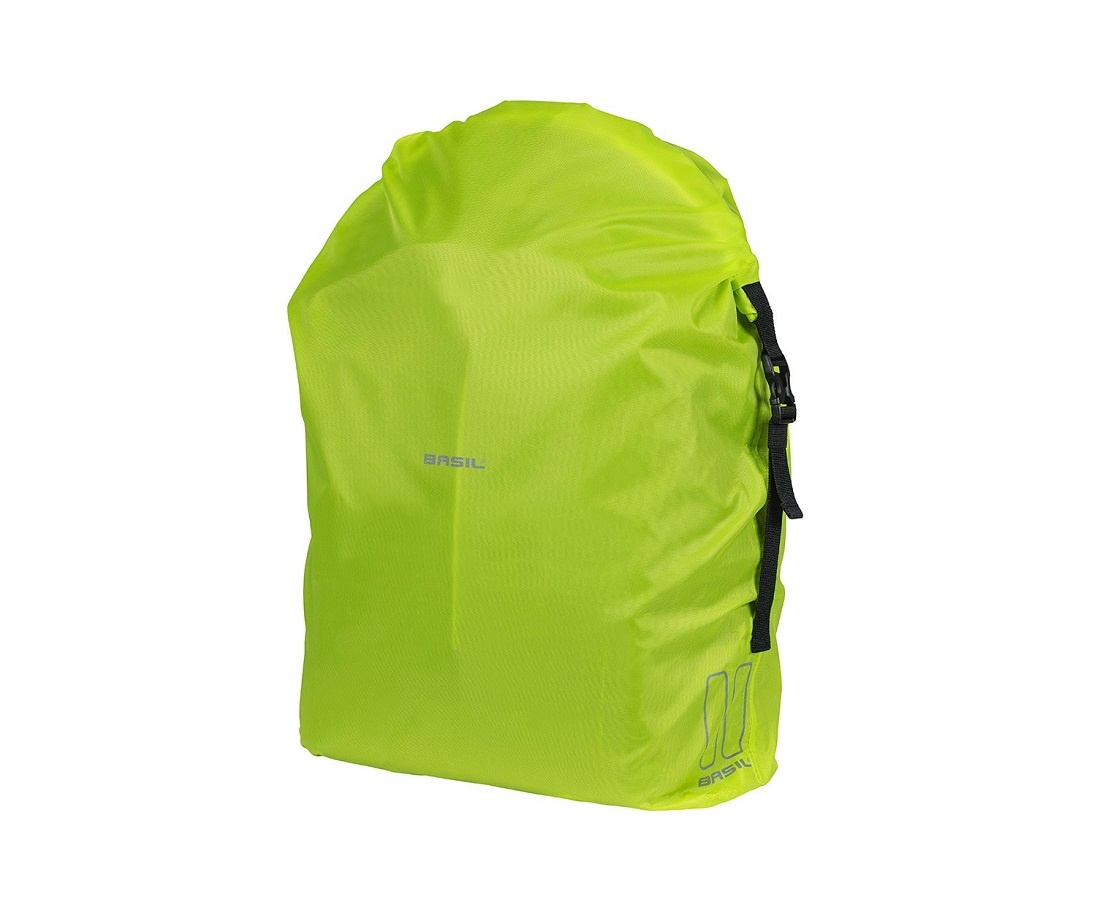 Bescherm uw fietstas tegen regen en opspattend vuil met deze regenhoes van Basil. De fluorescerend gele hoes van polyester is verticaal en is speciaal ontworpen voor fietsrugzakken en hogere fietstassen.