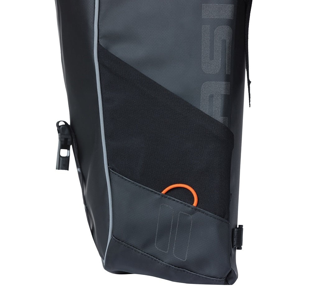 Basil Dubbele Fietstas Miles Tarpaulin MIK 2.0 34L Zwart/oranje