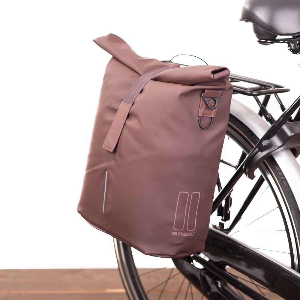 De achterkant van de tas is voorzien van een MIK Studs-adapter waarmee de tas eenvoudig aan de fiets bevestigd kan worden. Hiervoor is een drager met drie montagepunten nodig. Wanneer u niet over een dergelijke drager beschikt, kunt u met behulp van de apart verkrijgbare MIK Studs Frame adapter toch gebruikmaken van dit handige systeem. Met MIK Studs kun je niet alleen een tas of mand op de bagagedrager plaatsen, maar ook extra tassen aan de zijkant van de drager vastklikken. Meer informatie over het MIK Studs-systeem leest u hier.