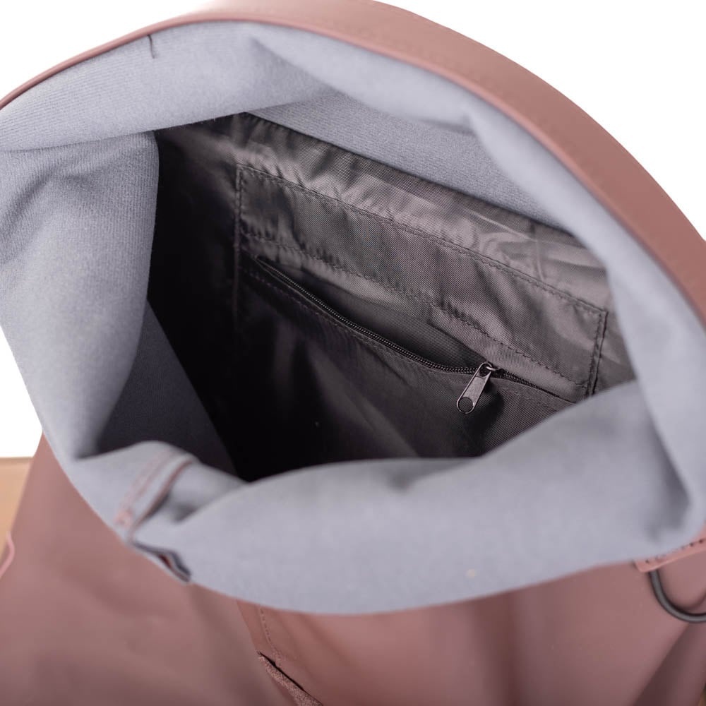 De tas heeft één ruim binnenvak met een inhoud van 14 tot 16 liter, afhankelijk van hoe hoog u de tas dichtmaakt. Er ligt een goede bodemplaat in, die stevig op zijn plek blijft met klittenband. In het hoofdvak zit een extra opbergvakje met rits. De tas is gemaakt van PU-leer van hoge kwaliteit, met waterafstotende, spatwaterdichte eigenschappen. De vouwsluiting met klittenband voorkomt dat regenwater de tas binnen druppelt. Ook heel praktisch: met de afneembare schouderriem maakt u van de fietstas direct een schoudertas.