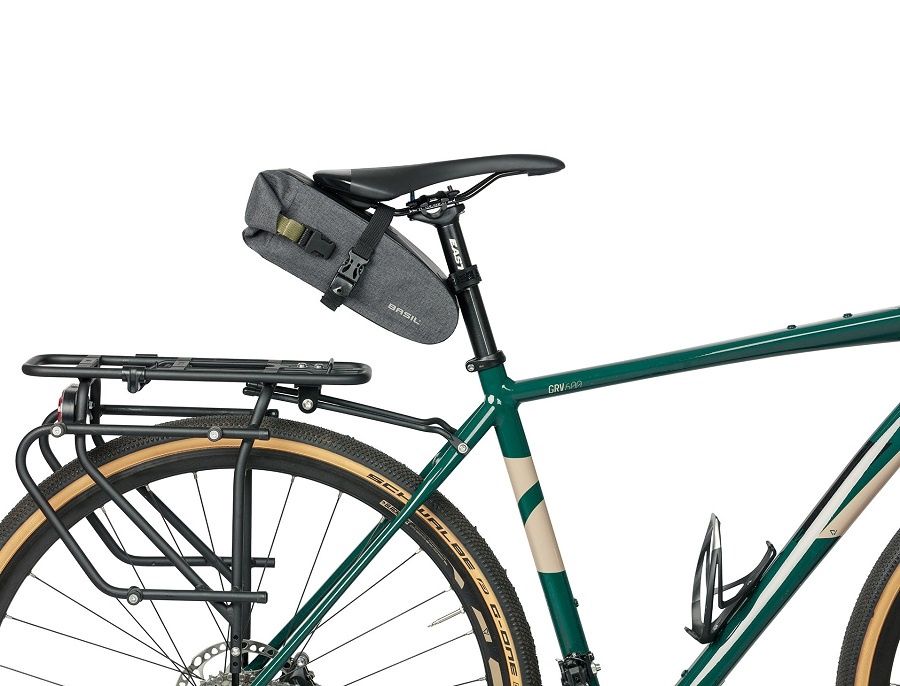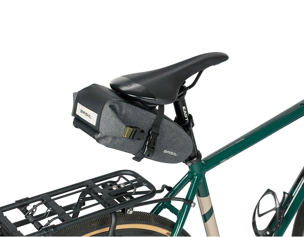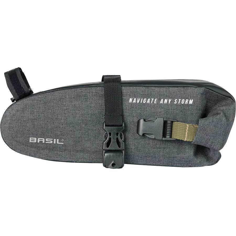 De saddle bag Navigator Storm van Basil is een sportieve, waterdichte zadeltas in maat M met een inhoud van 1,5 liter. De tas is uitgevoerd in het zwart/donkergrijs met legergroene details en voorzien van reflectie en een rolsluiting.