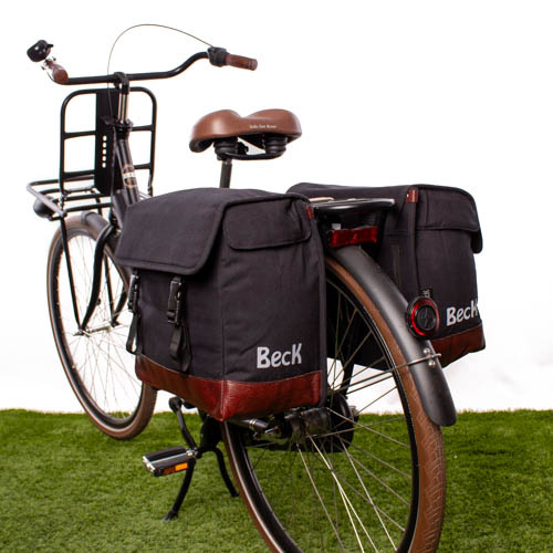 Deze dubbele fietstas Beck Natural heeft een inhoud van ca. 38 liter. De zwarte fietstas heeft een klassieke uitstraling, met donkerbruine leren accenten. De tas is gemakkelijk te bevestigen en kan gebruikt worden met ledlampjes en snelbinders.