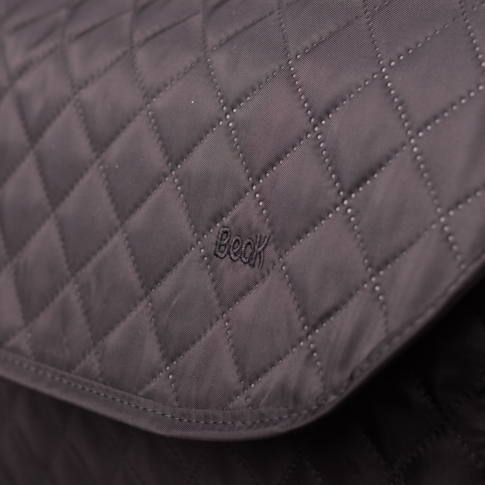 De Beck Quilt heeft een ruim hoofdvak dat sluit met een klep met klittenband. De achterkant en bodem zijn verstevigd, en met de meegeleverde zijplaten kunnen ook de zijkanten verstevigd worden. Zo behoudt de tas zijn vorm. Aan een zijkant van de tas zit een mesh opbergvak, waar bijvoorbeeld een drinkfles in past. De tas is ook voorzien van reflectie.