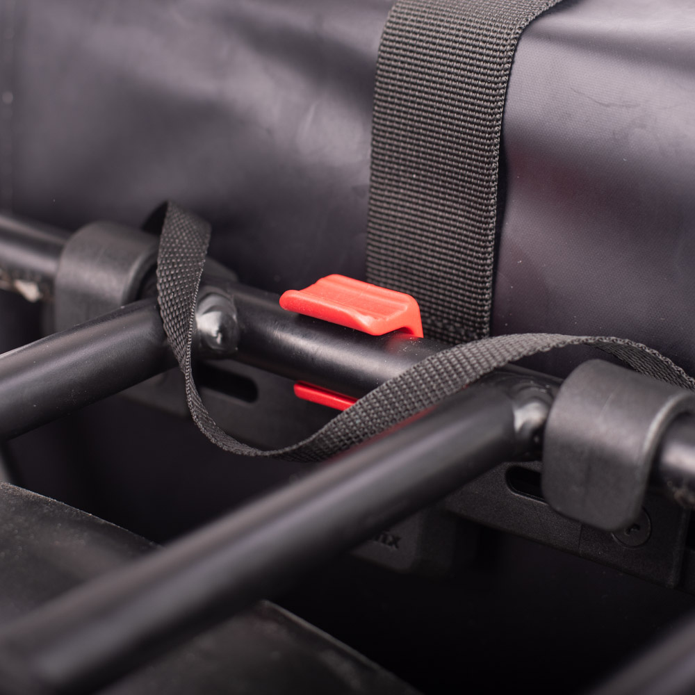 De enkele fietstas is eenvoudig aan de bagagedrager vast te maken met ronde KLICKfix-klemhaken. Deze haken zijn horizontaal te verplaatsen. Een draaibare klemhaak onderaan op de achterplaat houdt de tas netjes op zijn plek. De fietstas is ook geschikt voor gebruik op een e-bike. Wanneer u te voet verder gaat, draagt u de tas gemakkelijk met u mee aan de bijgeleverde verstelbare schouderband. Deze bevestigt u met klikgespen aan de tas.