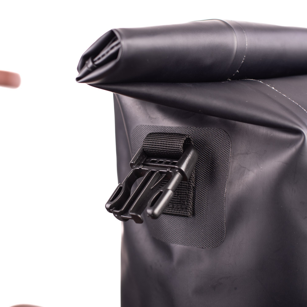 Deze sportieve, matzwarte enkele fietstas Base TPU van Beck heeft een inhoud van 18 liter. De water- en vuilafstotende tas is is gemaakt van stevig, weerbestendig TPU en voorzien van een laptopcompartiment, een schouderband en reflecterende logo's op de zijkanten. Eenvoudig aan de bagagedrager te bevestigen met KLICKfix-haken.