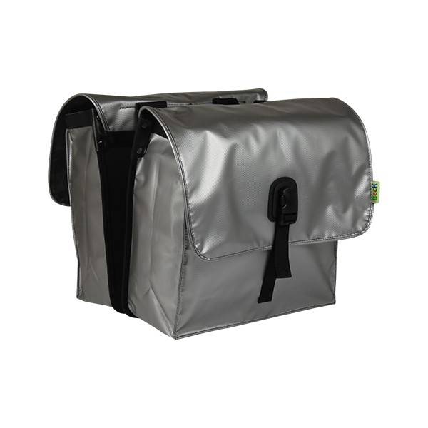 Deze volledig van bisonyl gemaakte fietstas is uitgevoerd in zilverkleur. De inhoud van deze Beck Small fietstas is 30 liter. De fietstas is eenvoudig vast te maken en is geschikt voor gebruik met ledlampjes. De snelbinders blijven beschikbaar. Ook is de fietstas geschikt voor gebruik met E-bikes. De Beck Small is waterafstotend en de opvallende flap en sluitclip geven de tas een stoer uiterlijk. De Small is voorzien van harde binnenplaten voor extra stevigheid. Daarnaast zorgt het reflecterende Beck-logo voor een goede zichtbaarheid in het donker.