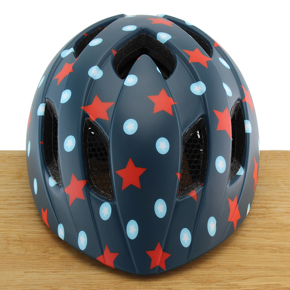 3 | Kleur. De helm is uitgevoerd het navy blauw met kleurrijke sterren. Met deze kinderfietshelm gaat uw kind als een ''raket''.