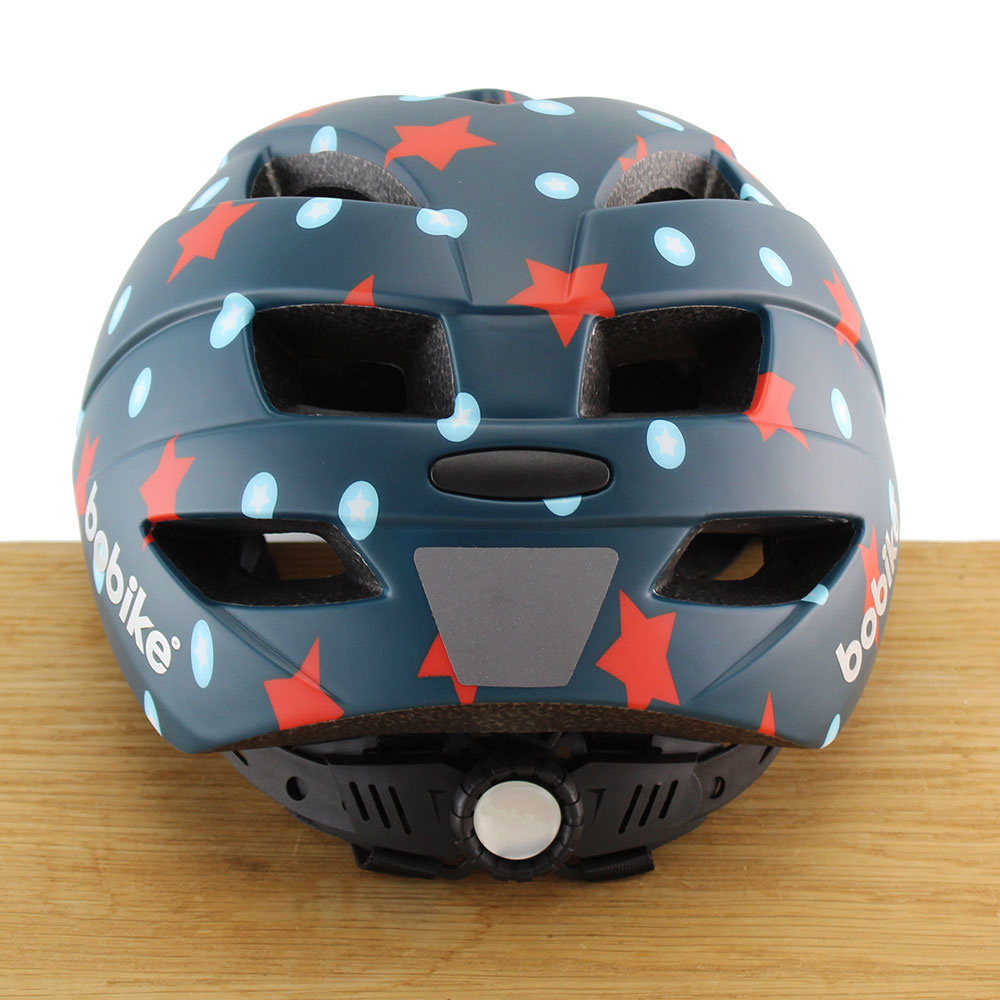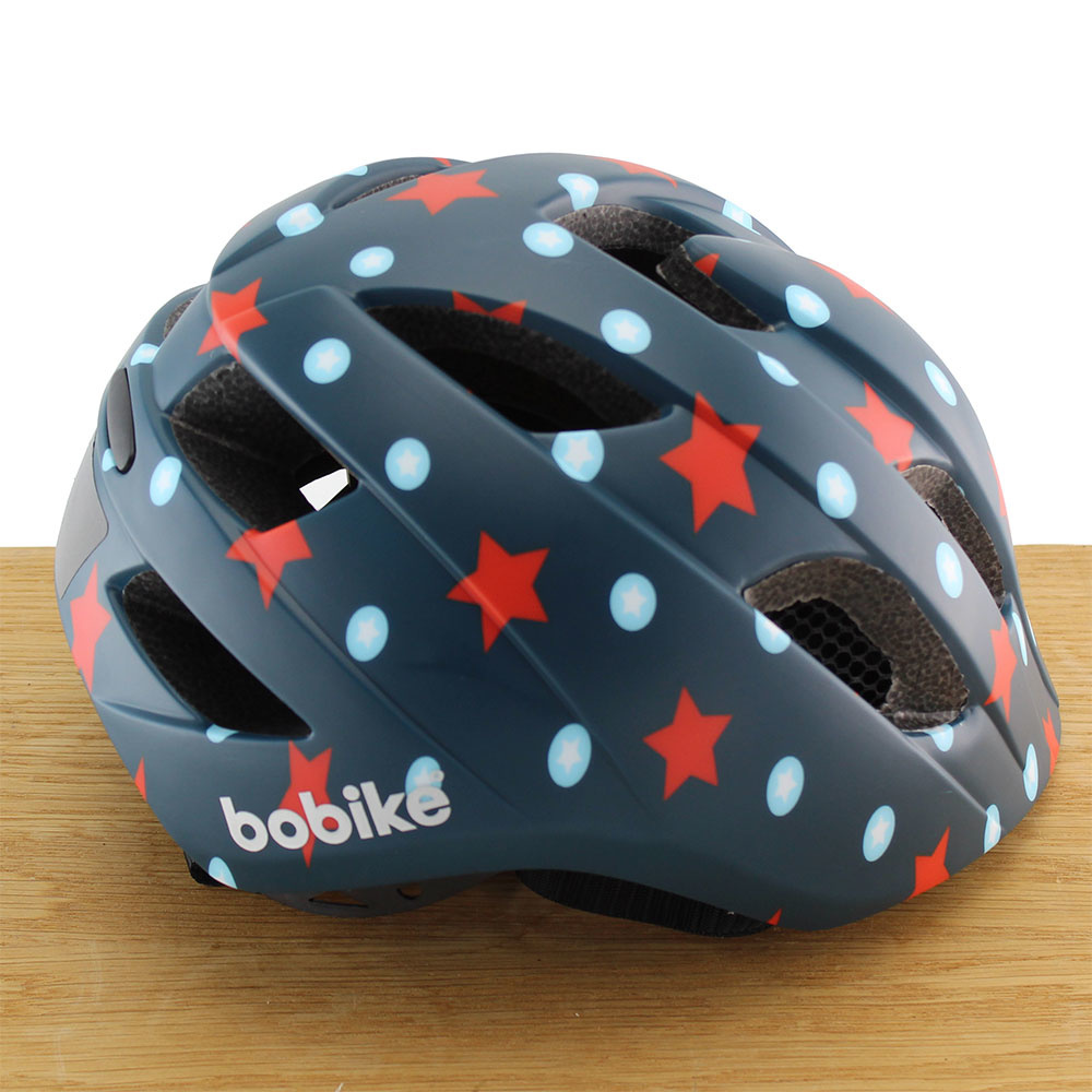 Een veilige en vrolijke kinderfietshelm in de maat S van het bekende merk Bobike. Deze Navy Stars fietshelm is ook verkrijgbaar in twee andere kleuren (zie gerelateerde producten hieronder).