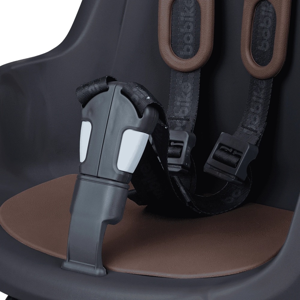 Het duurzame voorzitje One Mini Eco van Bobike heeft een dubbelwandig ontwerp en is gemaakt van kleurecht materiaal. Het zitje is uitgevoerd in het zwart, met een bruin kussentje van comfortabel, zacht kunststof. Dat zit niet alleen prettig, maar is ook waterafstotend én goed schoon te houden. Ook de schouderriemen bieden genoeg comfort; ze bevatten namelijk schouderpads zodat ze zacht zijn en prettig dragen.