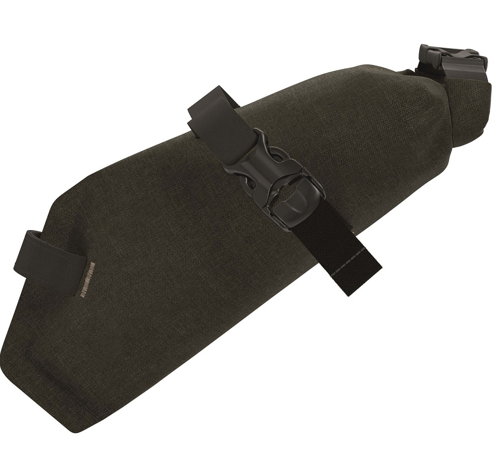 De zadeltas is gemaakt van 100% waterdichte IPX4-gecertificeerde materialen. De lichtgewicht tas heeft gelaste naden en een waterbestendige rolsluiting met een klikgesp. Dankzij de rolsluiting kan de tas groter of kleiner worden opgerold, afhankelijk van de inhoud van de tas. Het tasje kan met klittenband en banden met een klikgesp onder vrijwel elk zadel worden bevestigd.