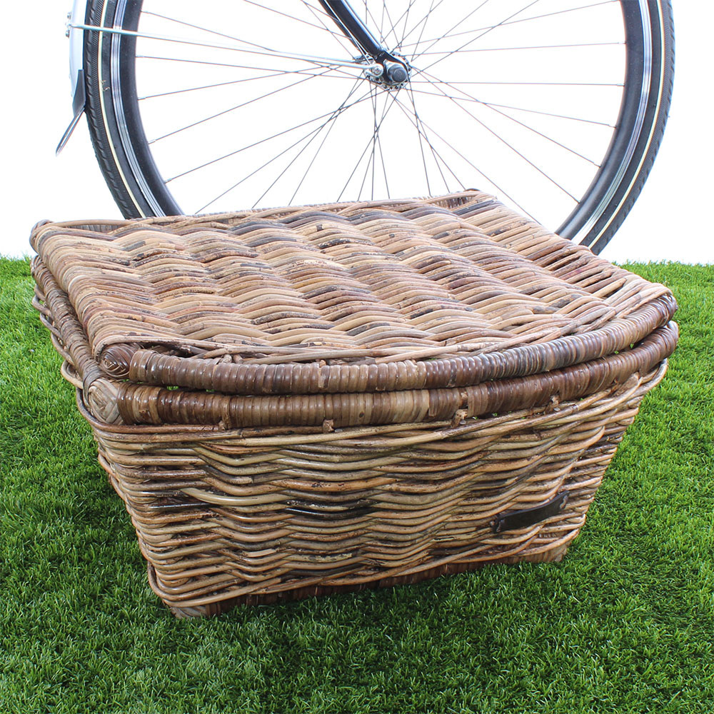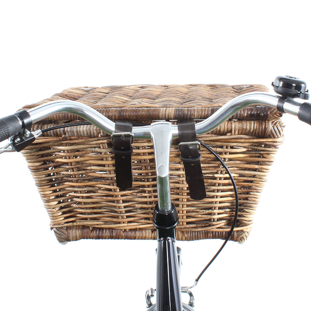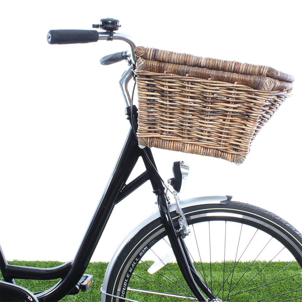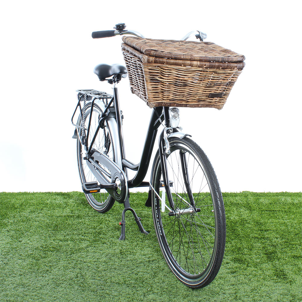 De riante opbergruimte van deze bruine buikmand is maar liefst 50 liter, dus u kunt meenemen wat u maar wilt. U kunt de mand bevestigen op de voordrager van uw fiets, of aan het stuur (tiewraps en riempjes meegeleverd). De Wicked buikmand is verkrijgbaar met en zonder deksel, in de kleuren naturel, zwart, bruin en grijs.