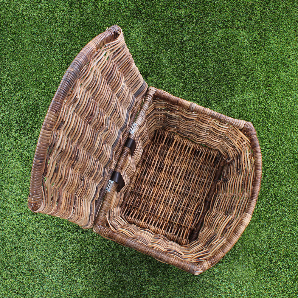 Deze mooie fietsmand van Wicked is een aanwinst voor uw fiets! Dit model wordt ook wel een buikmand genoemd en is een handgemaakt natuurproduct van riet. Deze versie van de mand is voorzien van een deksel dat u met één hand kunt openen en sluiten. Dit biedt extra bescherming voor uw spulletjes.