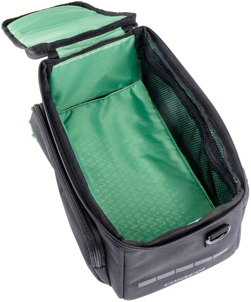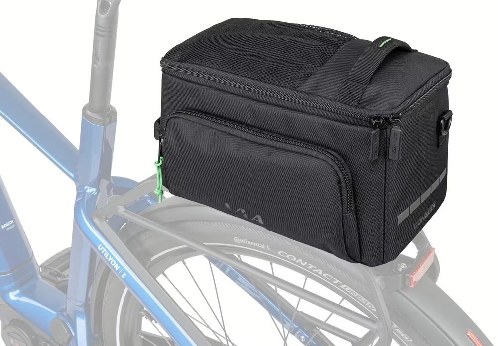 De Via Commuter is een praktische bagagedragertas van het merk CONTEC, gemaakt van gerecycled, waterafstotend polyester. De zwarte tas heeft een opvallende groene binnenvoering en nog enkele groene details. De bagagedragertas biedt ruim 11 liter aan ruimte voor spullen en is uitgerust met zijvakken, een schouderriem en een regenhoes. De tas is gemakkelijk op de fiets te plaatsen met de voorgemonteerde MIK 2.0-adapter.