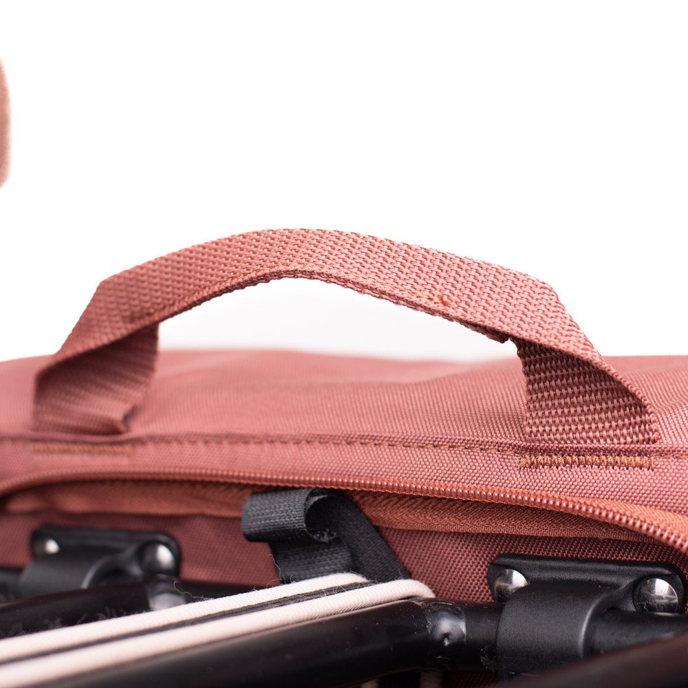 U bevestigt de tas heel eenvoudig met de bevestigingshaken aan de drager van uw fiets, en de tas is net zo makkelijk weer van de drager af te halen. Wanneer u de haken niet gebruikt, bijvoorbeeld wanneer u de tas als schoudertas of pakaftas meeneemt, kunnen deze netjes worden weggewerkt achter een ritsvak.