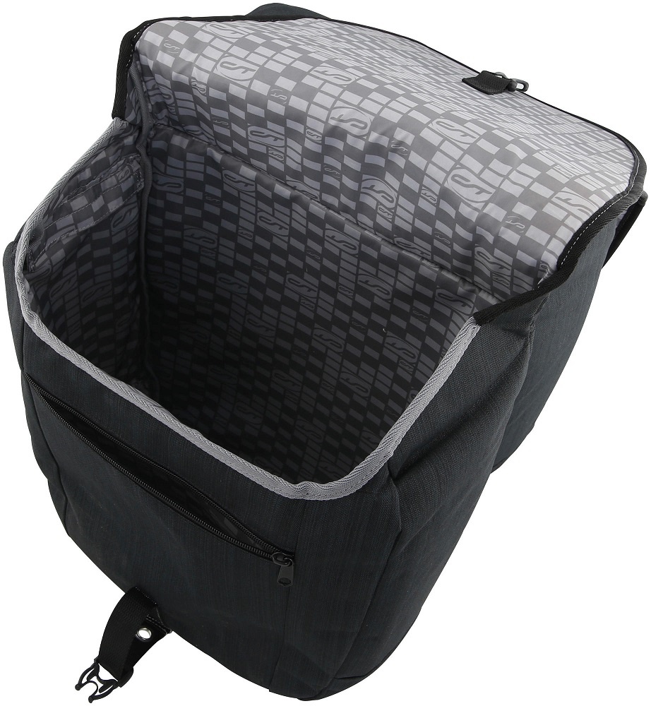 In beide tassen van de NEO Double XL vindt u een ruim hoofdvak. De tas heeft daarnaast twee extra voorvakken met rits: aan de voorkant en in de klep van de tas. De klep sluit met een verstelbare klikgesp. De binnenkant van de tas is gevoerd en voor extra stevigheid is de tas uitgerust met (losse) bodem- en zijplaten. Voor een goede zichtbaarheid in het verkeer is de tas voorzien van reflectie.