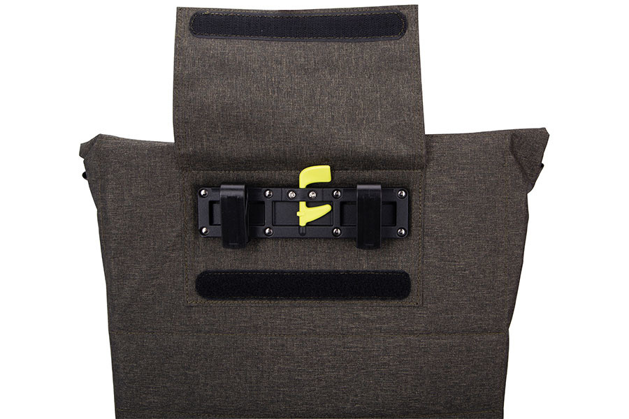 U bevestigt de tas heel eenvoudig met de bevestigingshaken aan de drager van uw fiets, en de tas is net zo makkelijk weer van de drager af te halen. Wanneer u de tas als rugzak draagt, kunnen de haken netjes worden weggewerkt achter een flap met klittenband.