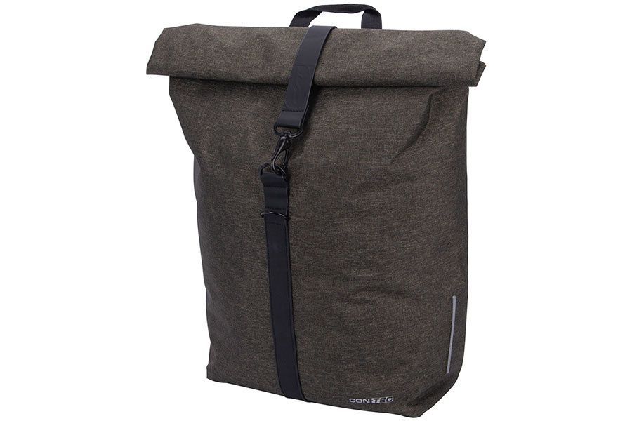 Handig: de LIM Backpack is een enkele fietstas en rugtas ineen! Deze trendy fietstas is onderdeel van de urban LIM ('less is more')-serie van CONTEC. De olijfgroene rugtas is gemaakt van waterafstotend polyester en biedt 20 liter aan ruimte voor uw spullen. De tas is gemakkelijk op de fiets te bevestigen met haken, en kan ook worden gedragen als rugtas.