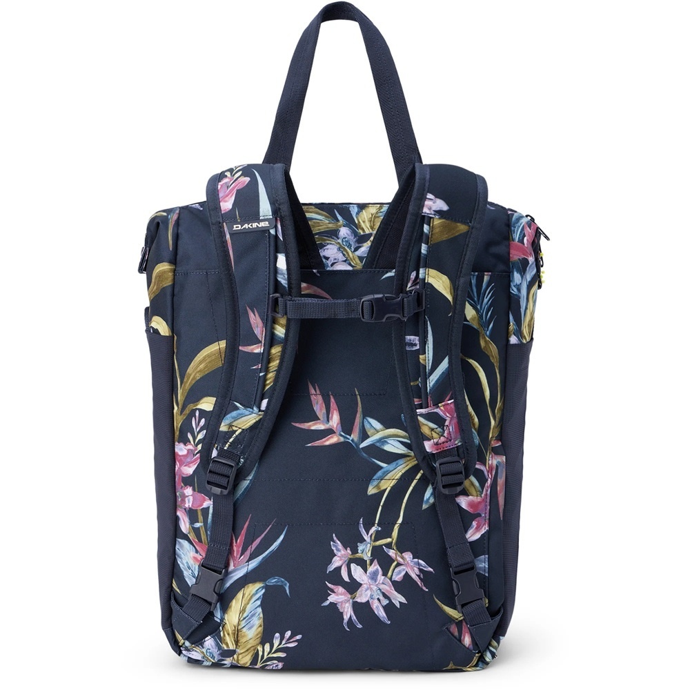 Deze trendy schoudertas en rugtas ineen van Dakine heeft een inhoud van ruim 26 liter. De Campus Hybrid Backpack is voorzien van een laptopcompartiment, een geïsoleerd koelvak en zijvakken. De donkerblauwe tas is uitgevoerd in een mooie bloemenprint in roze, lila, groen en lichtblauw. Een veelzijdige en modieuze tas voor dagelijks gebruik!