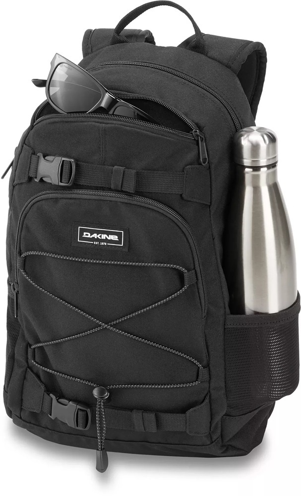 Praktisch en compact, dat is deze zwarte rugtas Grom van Dakine met een inhoud van 13 liter. Dankzij het kleine formaat is deze rugtas ideaal als school- of vrijetijdsrugzak voor kinderen. De tas heeft een ruim hoofdvak, enkele andere handige opbergmogelijkheden en reflecterende details.