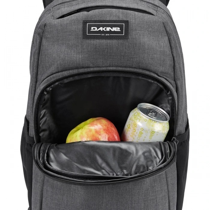 De tas heeft een ruim hoofdvak dat afsluitbaar is met een rits. Achterin dit hoofdvak is een apart (niet-gepolsterd) vak dat ruimte biedt voor bijvoorbeeld een tablet. Aan de voorkant van de tas vindt u nog twee vakken met rits. Eén van deze vakken is geïsoleerd, waardoor lunch of snacks koel blijven. In dit vak zit nog een extra ritsvak van mesh. In de twee elastische mesh zijvakken kunt u een paraplu of flesje drinken opbergen. Ter bescherming van uw spullen is de bodem van de tas gewatteerd, en binnenin de tas zit een naamlabel.