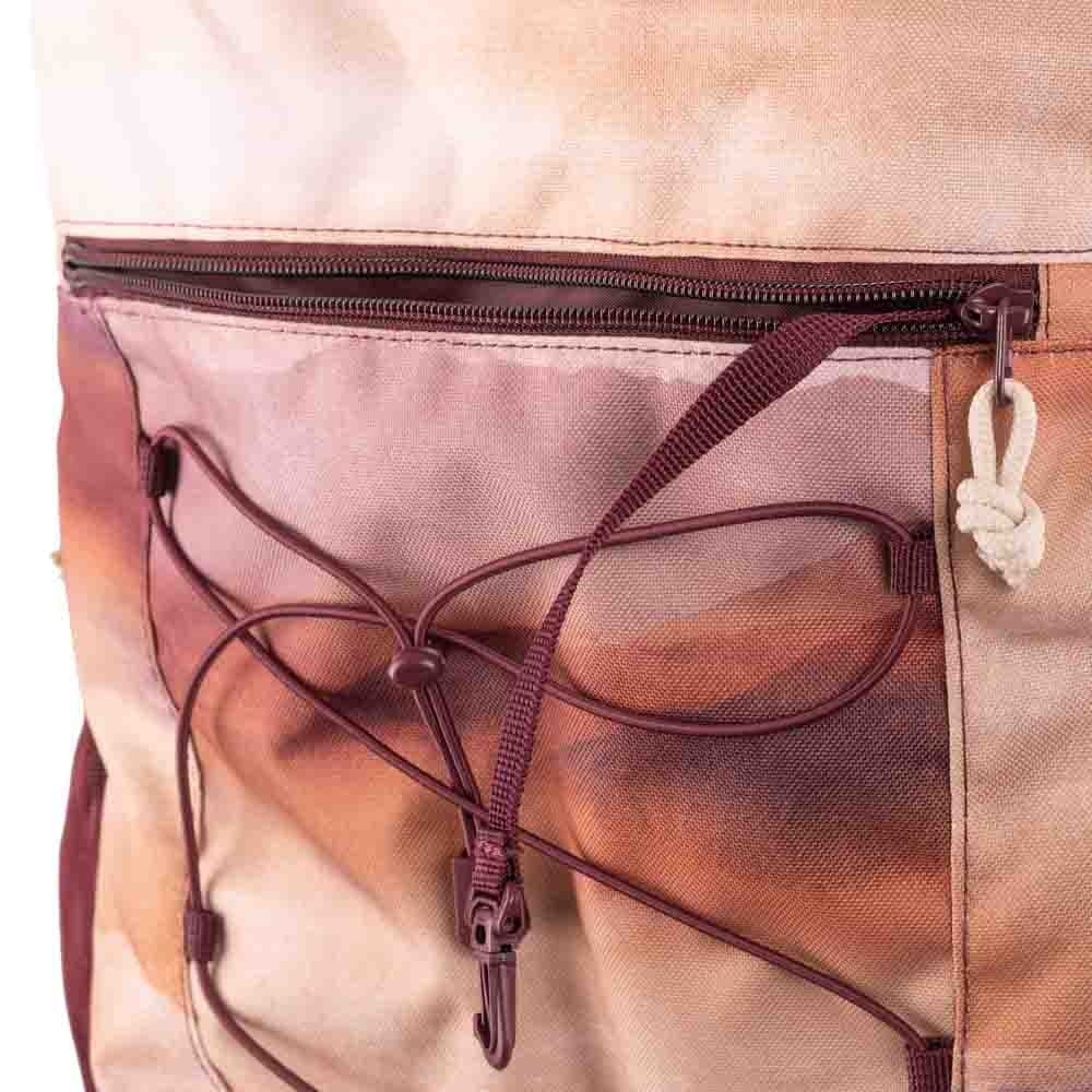 Foto's 1 en 2 tonen de rugzak in de roze uitvoering 'Sunrise Canyon'. De andere foto's dienen slechts als voorbeeld om de verschillende opbergmogelijkheden van de rugtas te tonen.
